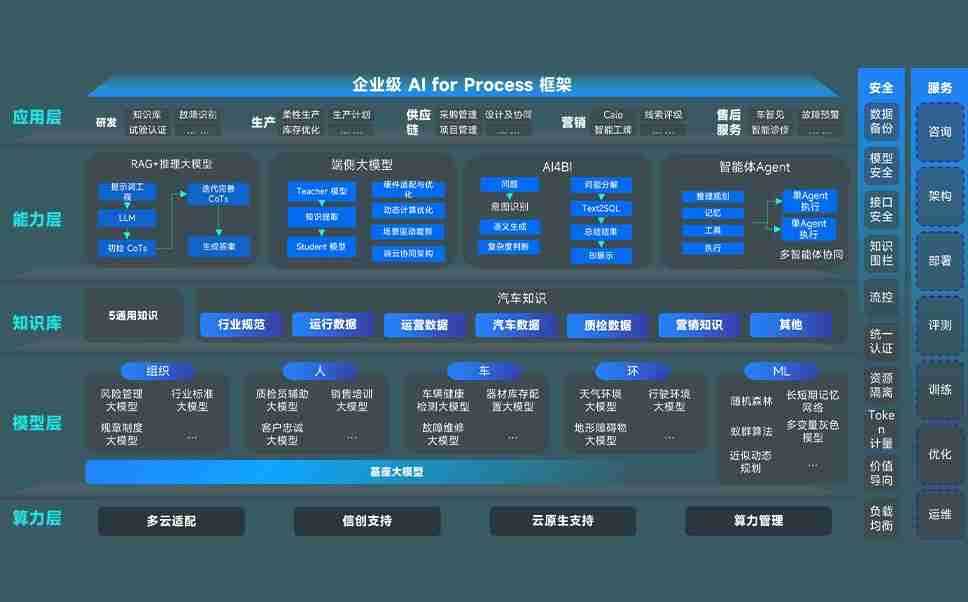 端到端的一站式AI工作空间深度融合了从企业战略规划到日常经营的全流程业务板块,,,,定向解决车企内部领域多、、、、部门多、、、、链条长、、、、场景碎片化等难题,,,支持车企快速构建以AI为核心的生产力写作体系,,实现任务执行与AI能力的无缝集成与交互
